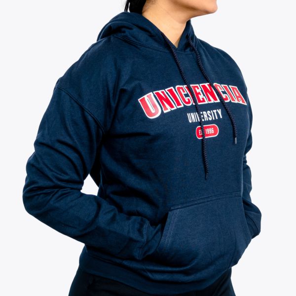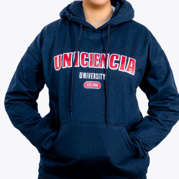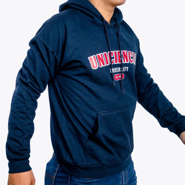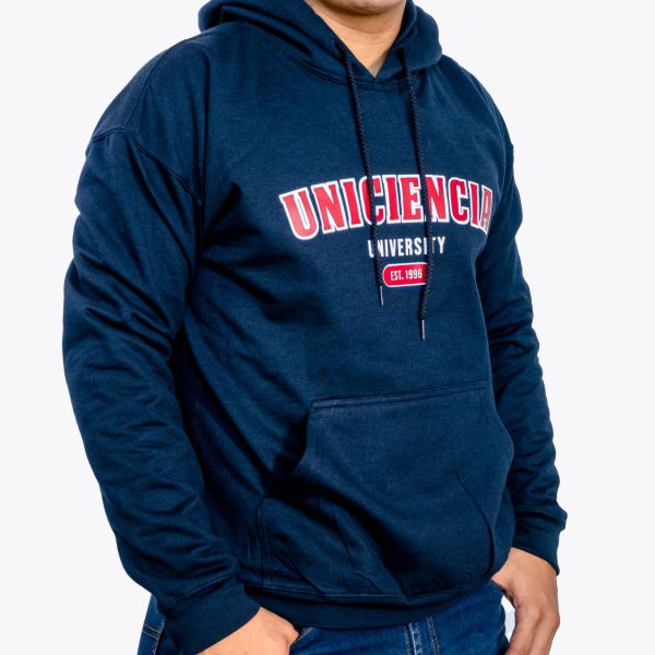 Buzo Unisex tipo hoodie 50% Algodón y 50% Poliéster, con capucha y cordón del mismo color de la prenda. Estampado horizontal full color.
