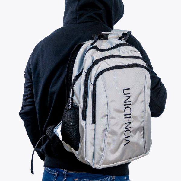 Morral universitario en tela importada bordado vertical, tres compartimentos, bolsillos laterales, bolsillos frontales incluye bolsillos internos para esferos, laptop o portátil.